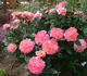 Floribunda, Shrub. Pink, darker edges. None to mild fragrance. Medium, full (26-40 petals), cluster-flowered, in large clusters bloom form. Prolific, blooms in flushes throughout the season. USDA zone 4b through 9b. Height of 2' to 5' (60 to 150 cm). Width of 4' to 6' (120 to 185 cm). Meilland (Paolino) (1920-1987) (1981), Mouchotte (1981).