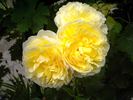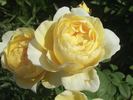 Shrub. English Rose Collection. Yellow, orange shading. Moderate fragrance. Medium, very full (41+ petals), in small clusters bloom form. Blooms in flushes throughout the season. USDA zone 5b through 10b. Height of 3' to 6' (90 to 185 cm). Width of 4' to 5' (120 to 150 cm). David C. H. Austin (1926-2018) (1992).