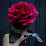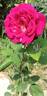 Hybrid Tea. Dark red, darker veining. Moderate fragrance. Large, full (26-40 petals), borne mostly solitary, high-centered bloom form. Blooms in flushes throughout the season. USDA zone 6b and warmer. Height of 3' to 5' 7" (90 to 170 cm). Width of 2' (60 cm). Hans Jürgen Evers (1940-2007) (1988).