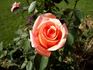 Hybrid Tea. Coral, peach shading. Strong, fruity, opinions vary fragrance. Large, full (26-40 petals), borne mostly solitary, cluster-flowered, in small clusters, exhibition, high-centered to cupped bloom form. Blooms in flushes throughout the season. USDA zone 7b and warmer. Height: 31" to 4' (80 to 120cm). Width: 2' to 28" (60 to 70cm). Gareth Fryer (1948-....) (1991).