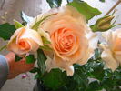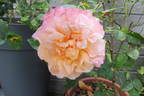 Hybrid Tea. Peach and light yellow, ages to salmon-pink . Strong, fruity, sweet fragrance. Very large, very full (41+ petals), borne mostly solitary, old-fashioned bloom form. Blooms in flushes throughout the season. USDA zone 6b and warmer. Height: 28" to 5' (70 to 150cm). Width: up to 5' (up to 150cm). Hans Jürgen Evers (1940-2007) (1999).