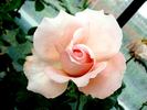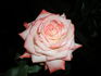Hybrid Tea. Light pink, darker center. Strong, damask, musk, myrrh, rose fragrance. Large, very full (41+ petals), borne mostly solitary, cluster-flowered, in small clusters, cupped, old-fashioned bloom form. Blooms in flushes throughout the season. USDA zone 7b and warmer. Height of 3' to 4' (90 to 120 cm). Alain Meilland (1940-....) (2000).
