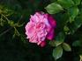China / Bengale. Pink, ages to crimson . Mild fragrance. Medium, double (17-25 petals), cluster-flowered, cupped, flat bloom form. Blooms in flushes throughout the season. USDA zone 7b through 10b. Height: 3' to 5' (90 to 150cm). Width: 3' (90cm). Dubourg (1825).