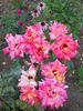 Floribunda, Shrub. Rose-pink, light pink highlights, lighter center. [Pink.]. Mild, fruity fragrance. Small to medium, semi-double to double, cluster-flowered, in large clusters, cupped bloom form. Continuous (perpetual) bloom throughout the season. USDA zone 5b and warmer. Height of 32" to 9' 10" (80 to 300 cm). Width of up to 32" (up to 80 cm). Reimer Kordes (1922-1997) (1975).