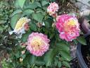 Shrub. Yellow, pink edges. Strong, citrus, fruity fragrance. Medium to large, very full (41+ petals), in small clusters, cupped-to-flat bloom form. Blooms in flushes throughout the season. Height: 37" to 4¼' (95 to 130cm). Width: 43" to 4¼' (110 to 130cm). Tom Carruth (2017).