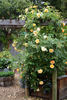 Climber, Large-Flowered Climber, Shrub. Apricot, orange blending, golden-yellow blending. Strong, fruity fragrance. Medium, double (17-25 petals), cluster-flowered, in small clusters, cupped bloom form. Blooms in flushes throughout the season. USDA zone 5b through 10b. Height of 4' 11" to 12' (150 to 365 cm). Width of 3' to 5' (90 to 150 cm). Malcolm ("Mike") Lowe (1986).
