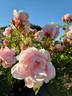 Hybrid Tea. Light pink, darker center. Strong, damask, musk, myrrh, rose fragrance. Large, very full (41+ petals), borne mostly solitary, cluster-flowered, in small clusters, cupped, old-fashioned bloom form. Blooms in flushes throughout the season. USDA zone 7b and warmer. Height of 3' to 4' (90 to 120 cm). Alain Meilland (1940-....) (2000).