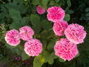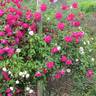 Found Rose, Bourbon, China / Bengale, Miscellaneous OGR. Carmine-red and purple. Strong, spice fragrance. Large, full (26-40 petals), cluster-flowered bloom form. Blooms in flushes throughout the season. USDA zone 5b through 10b. Height: 4' to 4'11" (120 to 150cm). Width: up to 32" (up to 80cm). Unknown Chinese Breeder(s).