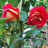 Floribunda. Red, deep yellow reverse. Mild, apple, tea fragrance. Medium to large, very double, cluster-flowered, in small clusters, high-centered to cupped bloom form. Blooms in flushes throughout the season. Height of 47" to 5¼' (120 to 160 cm). Width of 30" to 35" (75 to 90 cm). Christian Bédard (2008).