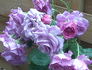 Grandiflora. Dark purple, lavender shading. Dark lavender-plum with lighter reverse. Strong, clove, damask, lemon, old rose fragrance. Large, full (26-40 petals), cluster-flowered, in large clusters, high-centered bloom form. Blooms in flushes throughout the season. USDA zone 5b and warmer. Height: 4' to 5' (120 to 150cm). Francois Dorieux II (1955-2015) (1992).