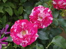 Hybrid Tea.  Deep pink, white stripes.  Strong, sweet fragrance.  Very large, very full (41+ petals), high-centered bloom form.  Blooms in flushes throughout the season.  USDA zone 4b and warmer.