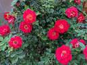 Floribunda, Shrub. Red, white undertones. Double (17-25 petals) bloom form. USDA zone 3b and warmer. Larry Dyck (2007).