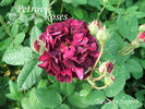 Gallica / Provins.  Purple, golden-yellow stamens.  Moderate fragrance.  Large, double (17-25 petals), borne mostly solitary, cluster-flowered, in small clusters, flat bloom form.  Once-blooming spring or summer.  USDA zone 4b through 8b.  Height of 39" to 5' (100 to 150 cm).  Width of 2' to 3' (60 to 90 cm). Thomas Rivers & Son Ltd. (1837).