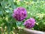Gallica / Provins, Hybrid China. Red, violet shading, ages to violet . Strong fragrance. Medium to large, very full (41+ petals), button-eye, expanded bloom form. Once-blooming spring or summer. USDA zone 4b through 9a. Height: 3' to 7' (90 to 215cm). Width: 3' to 39" (90 to 100cm). Pierre Jean Louis Roëser (1829).