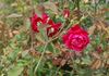 Found Rose, Bermuda Rose, China / Bengale. Cherry-red to crimson, white streaks.. Mild, raspberry fragrance. Small to medium, very double, borne mostly solitary, cluster-flowered, in small clusters, in large clusters, cupped-to-flat, globular, reflexed bloom form. Blooms in flushes throughout the season. USDA zone 7b through 10b. Height: 30" to 6' (75 to 185cm). Width: 3' to 4' (90 to 120cm). Coquereau, Coquerel, Unknown, Unknown Belgian breeder(s), Villor