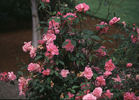 China / Bengale. Pink. Moderate fragrance. Medium, semi-double to double, in small clusters, cupped-to-flat bloom form. Blooms in flushes throughout the season. USDA zone 6a through 10b. Height of 3' to 10' (90 to 305 cm). Width of 30" to 6½' (75 to 200 cm). John Parsons (1793).