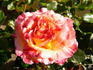 Shrub. Orange-pink, stripes, yellow reverse. Mild, apple, pepper fragrance. Full (26-40 petals) bloom form. Prolific, blooms in flushes throughout the season. USDA zone 6b through 9b (default). Height: up to 32" (up to 80cm). Width: 20" to 2' (50 to 60cm). G. Delbard (1998).