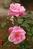 China / Bengale. Pink. Moderate fragrance. Medium, semi-double to double, in small clusters, cupped-to-flat bloom form. Blooms in flushes throughout the season. USDA zone 6a through 10b. Height of 3' to 10' (90 to 305 cm). Width of 30" to 6½' (75 to 200 cm). John Parsons (1793).
