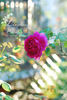 Found Rose, Bermuda Rose, China / Bengale.  Cherry-red to crimson, white streaks..  Mild, raspberry fragrance.  Small to medium, very double, borne mostly solitary, cluster-flowered, in small clusters, in large clusters, cupped-to-flat, globular, reflexed bloom form.  Blooms in flushes throughout the season.  USDA zone 7b through 10b.