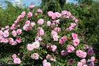 Climber, Miniature, Cl., Patio Rose, Cl..  Pink.  Mild fragrance.  Double (17-25 petals) bloom form.  Blooms in flushes throughout the season.  USDA zone 4b through 11.  Height of 7' to 10' (215 to 305 cm).  Width of 8' to 10' (245 to 305 cm). Edward P. Sima (1975).