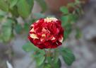 Hybrid Tea.  Red, yellow reverse, red edges, yellow undertones, ages to carmine-red .  Mild, fruity fragrance.  Large, full (26-40 petals), borne mostly solitary, in small clusters, high-centered bloom form.  Blooms in flushes throughout the season.  USDA zone 7b and warmer.