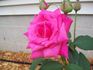 Hybrid Tea.  Rose-pink.  Flowers shocking pink. Cherry pink. Cerise pink. Carmine..  Mild to strong, old rose, spice fragrance.  Large, full (26-40 petals), borne mostly solitary, exhibition, high-centered bloom form.  Blooms in flushes throughout the season.  USDA zone 6a and warmer.