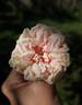 Found Rose, Centifolia.  Light pink, darker center.  Strong fragrance.  Large, double (17-25 petals), cupped, old-fashioned, rounded bloom form.  Once-blooming spring or summer.  USDA zone 4b through 9b.  Height of 3' to 6' (90 to 185 cm).  Width of 4' to 6' (120 to 185 cm). Edward A. Bunyard (1938).