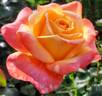 Hybrid Tea / Large-Flowered. Yellow and pink. Flowers peach yellow, fading to reddish. Strong fragrance. Large, full (26-40 petals), borne mostly solitary bloom form. Blooms in flushes throughout the season. USDA zone 7b and warmer. Height of 3' (90 cm). W. Kordes & Sons (1999).
