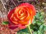 Hybrid Tea. Red, yellow reverse, red edges, yellow undertones, ages to carmine-red . Mild, fruity fragrance. Large, full (26-40 petals), borne mostly solitary, in small clusters, high-centered bloom form. Blooms in flushes throughout the season. USDA zone 7b and warmer. Height: 4' to 5½' (120 to 165cm). Width: 30" to 4' (75 to 120cm). Wilhelm Kordes III (1953 - 2016) (1989).