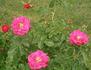 Hybrid Kordesii. Explorer Series Collection. Deep pink to red, purple highlights. Mild fragrance. Medium, full (26-40 petals), cluster-flowered bloom form. Occasional repeat later in the season. USDA zone 2b and warmer. Height of 5' to 8' (150 to 245 cm). Width of up to 10' (up to 305 cm). Dr. Felicitas Svejda (1969).
