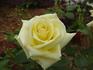 Hybrid Tea. Light yellow. Mild fragrance. Medium to large, double (17-25 petals), borne mostly solitary, classic hybrid tea, exhibition, high-centered bloom form. Blooms in flushes throughout the season. USDA zone 6b through 9b (default). Height of 4' to 6' (120 to 185 cm). Width of 2' to 4' (60 to 120 cm). John & Robyn Sheldon (2003).