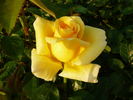 Hybrid Tea.  Butter-yellow.  None to mild, opinions vary fragrance.  Large, double (17-25 petals), borne mostly solitary, cluster-flowered bloom form.  Prolific, blooms in flushes throughout the season.  USDA zone 6b through 9b (default).