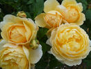 Shrub.  English Rose Collection.  Yellow, orange shading.  Moderate fragrance.  Medium, very full (41+ petals), in small clusters bloom form.  Blooms in flushes throughout the season.  USDA zone 5b through 10b.  Height of 3' to 6' (90 to 185 cm).  Width of 4' to 5' (120 to 150 cm). David C. H. Austin (1926-2018) (1992).