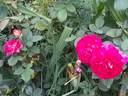 Hybrid Perpetual, Hybrid Tea.  Cerise or cherry-red.  Strong fragrance.  Very large, double (17-25 petals), borne mostly solitary, in small clusters, cupped bloom form.  Blooms in flushes throughout the season.  USDA zone 4b through 9b.  Height of 4' (120 cm).  Width of 3' (90 cm). Ludwig Weigand (1920).