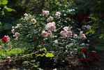 Shrub. English Rose Collection. Light pink. Moderate, sweet fragrance. Medium, borne mostly solitary, in small clusters, cupped, reflexed bloom form. Blooms in flushes throughout the season. USDA zone 5b through 10b. Height of 4' to 6' (120 to 185 cm). Width of 4' to 5' (120 to 150 cm). David C. H. Austin (1926-2018) (1992).