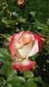 Hybrid Tea. Yellow, red outer petals, ages to red . Moderate fragrance. Large, full (26-40 petals), borne mostly solitary, high-centered bloom form. Prolific, blooms in flushes throughout the season. USDA zone 7b and warmer. Height of 5' to 6' (150 to 185 cm). William A. Warriner (1991).