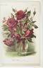 China / Bengale, Hybrid China. Scarlet. Strong, spice fragrance. Medium to large, full (26-40 petals), borne mostly solitary, in small clusters, cupped, open bloom form. Blooms in flushes throughout the season. USDA zone 6b through 10b. Height: 5' to 6'7" (150 to 200cm). Rudolf Geschwind (1829-1910) (1897).