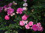 Floribunda. Pink. Mild fragrance. Medium, very full (41+ petals), in small clusters, cupped, rosette bloom form. Prolific, blooms in flushes throughout the season. USDA zone 6b and warmer. Height: 28" to 39" (70 to 100cm). Width: up to 2' (up to 60cm). Samuel Darragh (1932-2019) McGredy IV (1978).