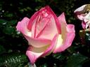 Hybrid Tea. Pink blend, white reverse, ages to pink . Moderate, fruity fragrance. Large, full (26-40 petals), borne mostly solitary, high-centered bloom form. Blooms in flushes throughout the season. USDA zone 5b through 10b. Height of up to 5' (up to 150 cm). Width of up to 4' (up to 120 cm). Joseph F. Winchel (1991).