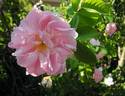 Damask. Light pink, golden-yellow stamens, ages to white . Strong, damask fragrance. Semi-double (9-16 petals), cluster-flowered, in small clusters bloom form. Once-blooming spring or summer. USDA zone 4b through 9b. Height: 3' to 6' (90 to 185cm). Width: 3' to 5' (90 to 150cm). Unknown (1792), Unknown Dutch origin (1732).