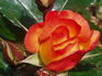 Hybrid Tea. Red, yellow reverse, red edges, yellow undertones, ages to carmine-red . Mild, fruity fragrance. Large, full (26-40 petals), borne mostly solitary, in small clusters, high-centered bloom form. Blooms in flushes throughout the season. USDA zone 7b and warmer. Height: 4' to 5½' (120 to 165cm). Width: 30" to 4' (75 to 120cm). Wilhelm Kordes III (1953 - 2016) (1989).