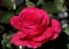 Hybrid Perpetual, Hybrid Tea. Cerise or cherry-red. Strong fragrance. Very large, double (17-25 petals), borne mostly solitary, in small clusters, cupped bloom form. Blooms in flushes throughout the season. USDA zone 4b through 9b. Height of 4' (120 cm). Width of 3' (90 cm). Ludwig Weigand (1920).