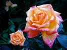 Hybrid Tea. Orange blend, red edges. Strong, fruity fragrance. Large, double (17-25 petals) bloom form. Blooms in flushes throughout the season. USDA zone 7b and warmer. Height of 3' to 4' (90 to 120 cm). Tom Carruth (1996).