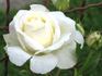 Hybrid Tea / Large-Flowered. White. Strong, spice, sweet fragrance. Medium, full (26-40 petals), borne mostly solitary, in small clusters, cupped, high-centered bloom form. Prolific, continuous (perpetual) bloom throughout the season. Height of 42" to 4' (105 to 120 cm). Width of 2' to 30" (60 to 75 cm). Witherspoon Rose Culture (2009).