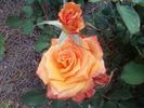 Hybrid Tea. Orange blend, red edges. Strong, fruity fragrance. Large, double (17-25 petals) bloom form. Blooms in flushes throughout the season. USDA zone 7b and warmer. Height of 3' to 4' (90 to 120 cm). Tom Carruth (1996).