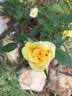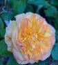 Hybrid Tea, Shrub. Grand Parfums Collection. Yellow. Strong, apricot or peach, cinnamon fragrance. Double (17-25 petals), cupped bloom form. Blooms in flushes throughout the season. USDA zone 7b and warmer. Height of up to 32" (up to 80 cm). Width of 20" to 2' (50 to 60 cm). G. Delbard (1992).