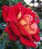 Floribunda. Red, deep yellow reverse. Mild, apple, tea fragrance. Medium to large, very double, cluster-flowered, in small clusters, high-centered to cupped bloom form. Blooms in flushes throughout the season. Height of 47" to 5¼' (120 to 160 cm). Width of 30" to 35" (75 to 90 cm). Christian Bédard (2008).