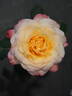 Floribunda. (Series: Canadian Artists Series) Yellow, pink edges, ages to cream . None to mild, rose fragrance. Medium, semi-double (9-16 petals), borne mostly solitary, in small clusters bloom form. Blooms in flushes throughout the season. USDA zone 2b and warmer. Height: 2' to 39" (60 to 100cm). Width: 28" to 45" (70 to 115cm). Agriculture Canada, Davidson (2003), Dyck (2003).