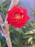 Floribunda. Red, deep yellow reverse. Mild, apple, tea fragrance. Medium to large, very double, cluster-flowered, in small clusters, high-centered to cupped bloom form. Blooms in flushes throughout the season. Height of 47" to 5¼' (120 to 160 cm). Width of 30" to 35" (75 to 90 cm). Christian Bédard (2008).