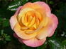 Hybrid Tea / Large-Flowered. Apricot and golden-yellow, ages to salmon-orange . Moderate fragrance. Double (17-25 petals), in small clusters bloom form. Blooms in flushes throughout the season. USDA zone 6b and warmer. Height of up to 30" (up to 75 cm). Gareth Fryer (1948-....) (1998).